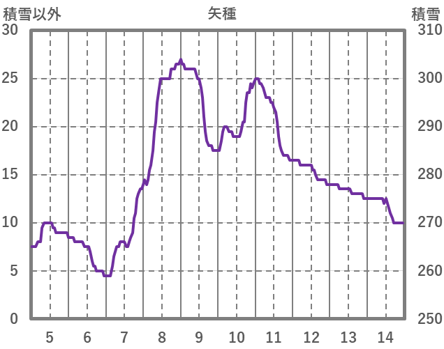 | 日 | 時 | 気温 | 降水 | 風向/風速 | 日照 | 積雪 | 降雪 |