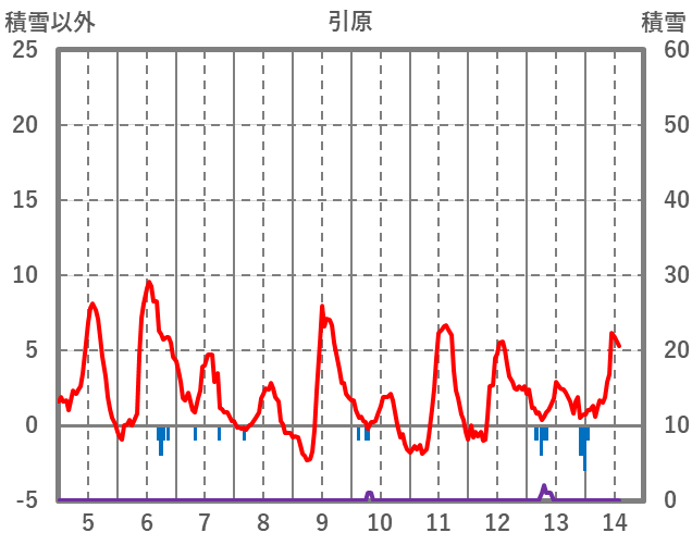 | 日 | 時 | 気温 | 降水 | 風向/風速 | 日照 | 積雪 | 降雪 |