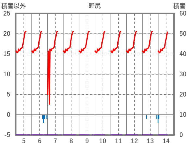 | 日 | 時 | 気温 | 降水 | 風向/風速 | 日照 | 積雪 | 降雪 |