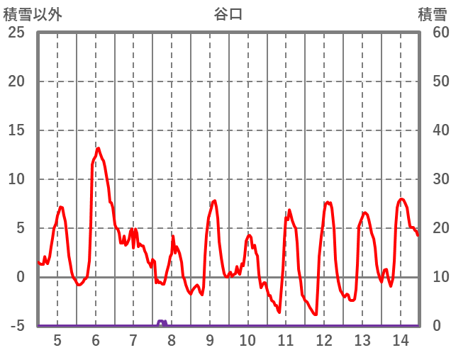 | 日 | 時 | 気温 | 降水 | 風向/風速 | 日照 | 積雪 | 降雪 |