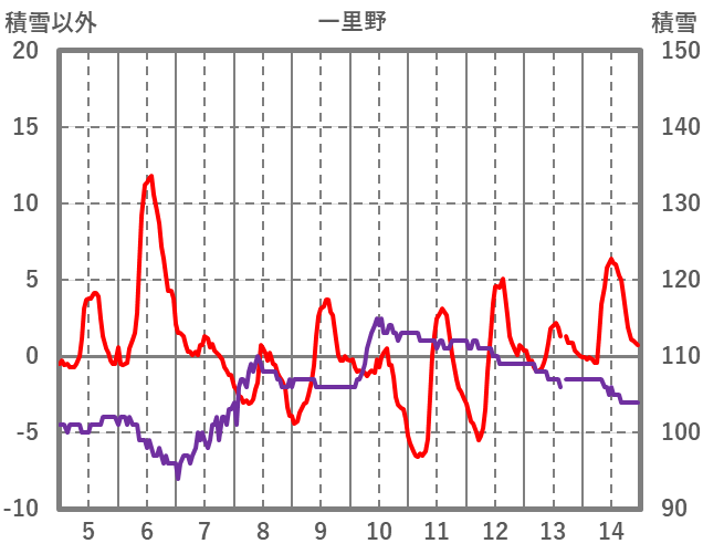 | 日 | 時 | 気温 | 降水 | 風向/風速 | 日照 | 積雪 | 降雪 |