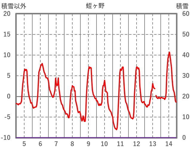 | 日 | 時 | 気温 | 降水 | 風向/風速 | 日照 | 積雪 | 降雪 |
