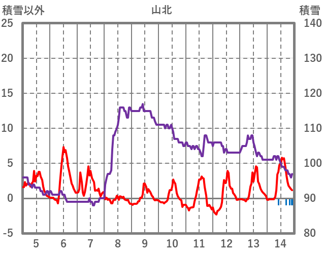 | 日 | 時 | 気温 | 降水 | 風向/風速 | 日照 | 積雪 | 降雪 |