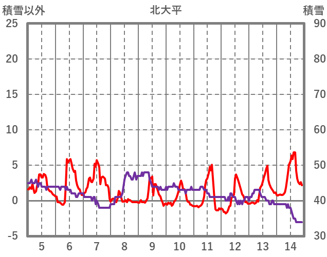| 日 | 時 | 気温 | 降水 | 風向/風速 | 日照 | 積雪 | 降雪 |