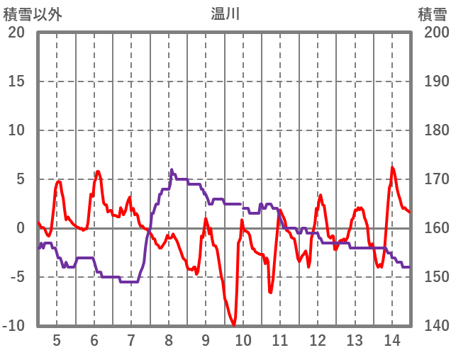 | 日 | 時 | 気温 | 降水 | 風向/風速 | 日照 | 積雪 | 降雪 |