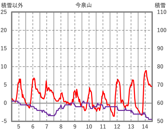 | 日 | 時 | 気温 | 降水 | 風向/風速 | 日照 | 積雪 | 降雪 |