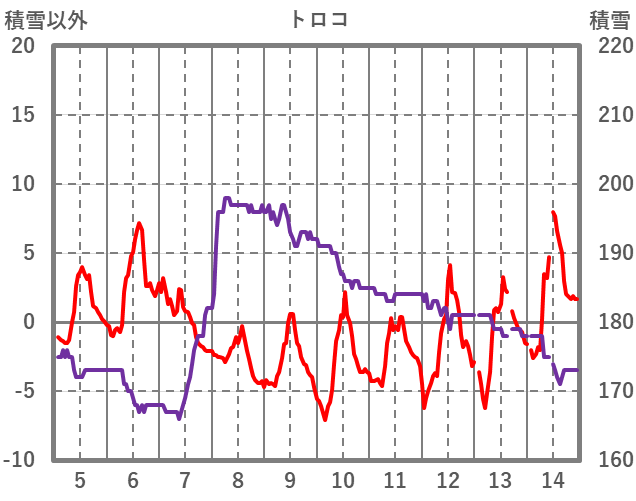 | 日 | 時 | 気温 | 降水 | 風向/風速 | 日照 | 積雪 | 降雪 |