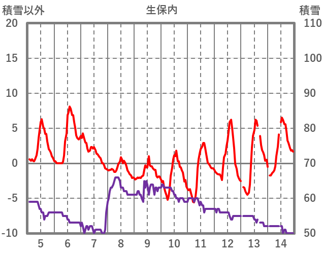 | 日 | 時 | 気温 | 降水 | 風向/風速 | 日照 | 積雪 | 降雪 |