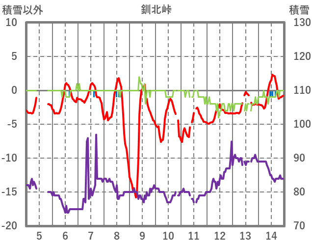 | 日 | 時 | 気温 | 降水 | 風向/風速 | 日照 | 積雪 | 降雪 |