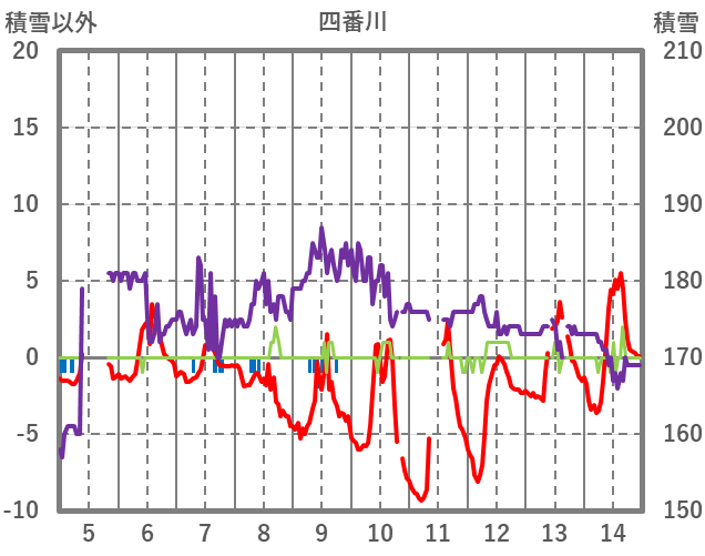 | 日 | 時 | 気温 | 降水 | 風向/風速 | 日照 | 積雪 | 降雪 |