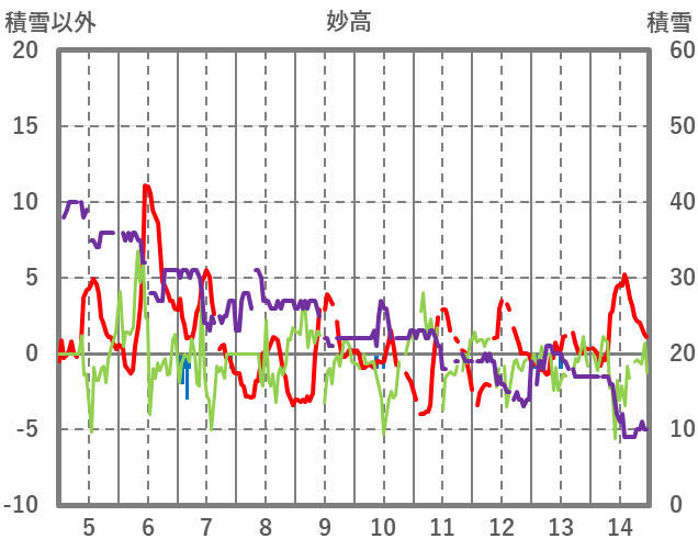 | 日 | 時 | 気温 | 降水 | 風向/風速 | 日照 | 積雪 | 降雪 |