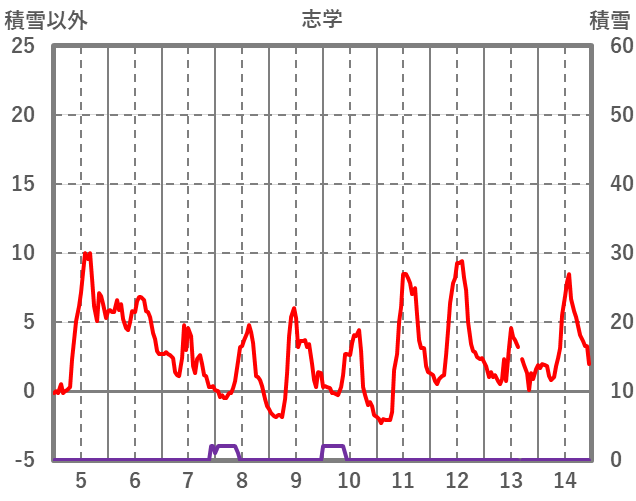 | 日 | 時 | 気温 | 降水 | 風向/風速 | 日照 | 積雪 | 降雪 |