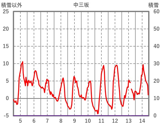 | 日 | 時 | 気温 | 降水 | 風向/風速 | 日照 | 積雪 | 降雪 |