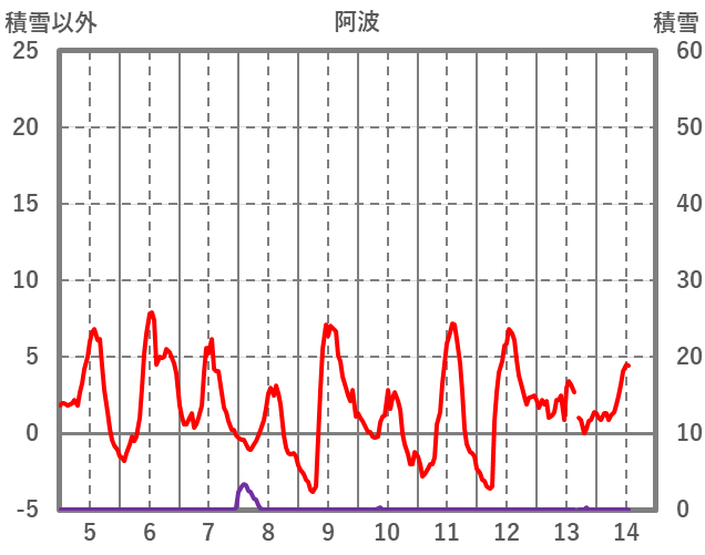 | 日 | 時 | 気温 | 降水 | 風向/風速 | 日照 | 積雪 | 降雪 |