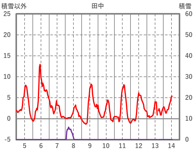 | 日 | 時 | 気温 | 降水 | 風向/風速 | 日照 | 積雪 | 降雪 |