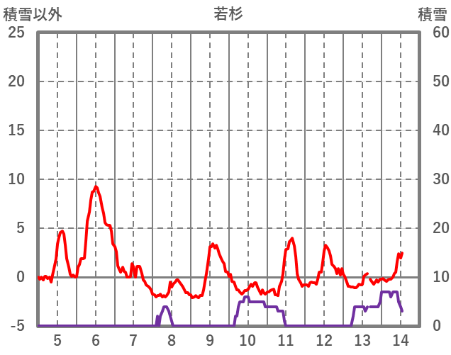 | 日 | 時 | 気温 | 降水 | 風向/風速 | 日照 | 積雪 | 降雪 |