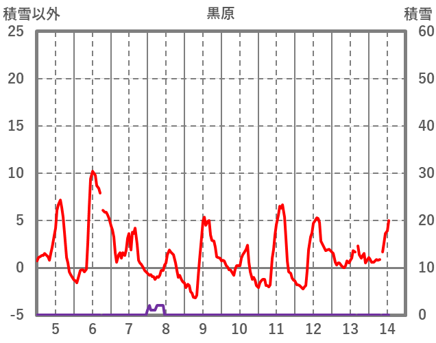 | 日 | 時 | 気温 | 降水 | 風向/風速 | 日照 | 積雪 | 降雪 |