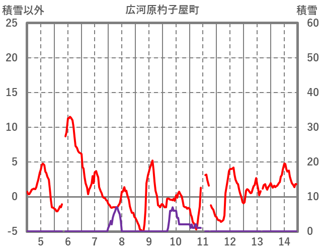 | 日 | 時 | 気温 | 降水 | 風向/風速 | 日照 | 積雪 | 降雪 |