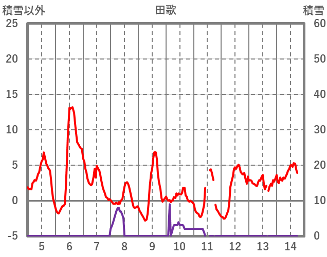 | 日 | 時 | 気温 | 降水 | 風向/風速 | 日照 | 積雪 | 降雪 |