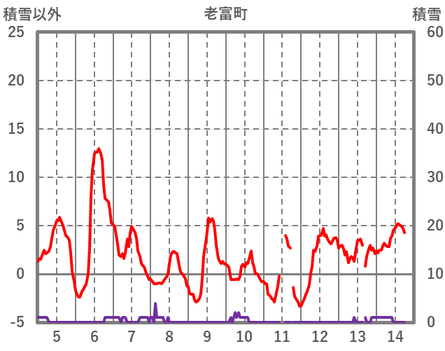 | 日 | 時 | 気温 | 降水 | 風向/風速 | 日照 | 積雪 | 降雪 |