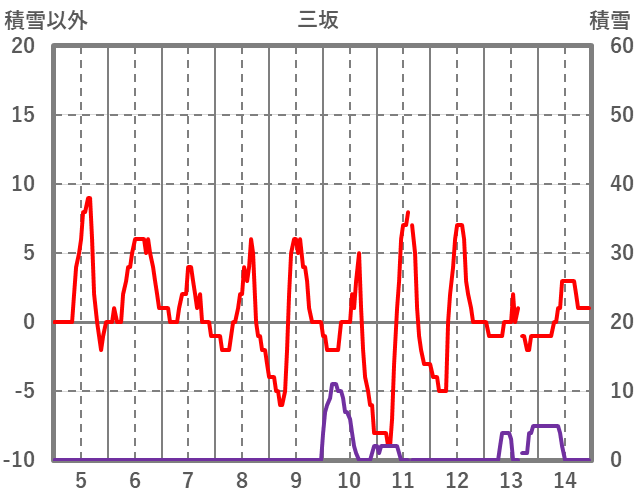 | 日 | 時 | 気温 | 降水 | 風向/風速 | 日照 | 積雪 | 降雪 |