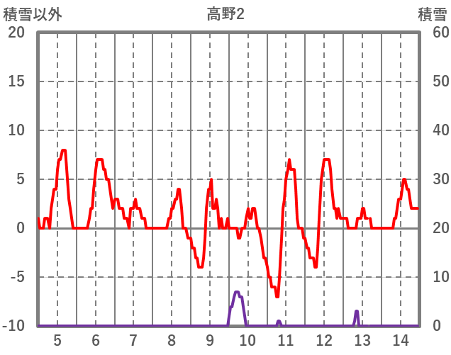 | 日 | 時 | 気温 | 降水 | 風向/風速 | 日照 | 積雪 | 降雪 |