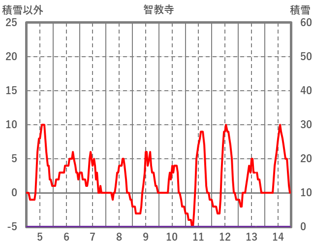 | 日 | 時 | 気温 | 降水 | 風向/風速 | 日照 | 積雪 | 降雪 |