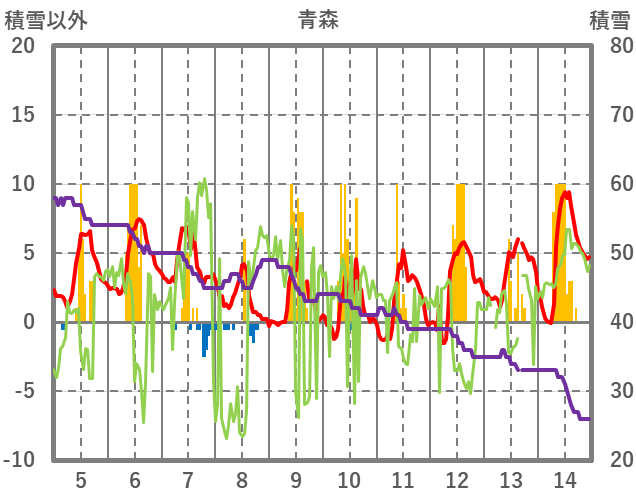 | 日 | 時 | 気温 | 降水 | 風向/風速 | 日照 | 積雪 | 降雪 |