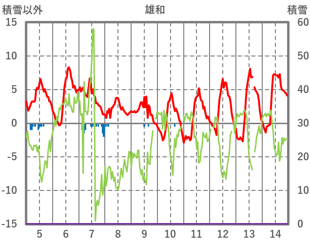 | 日 | 時 | 気温 | 降水 | 風向/風速 | 日照 | 積雪 | 降雪 |