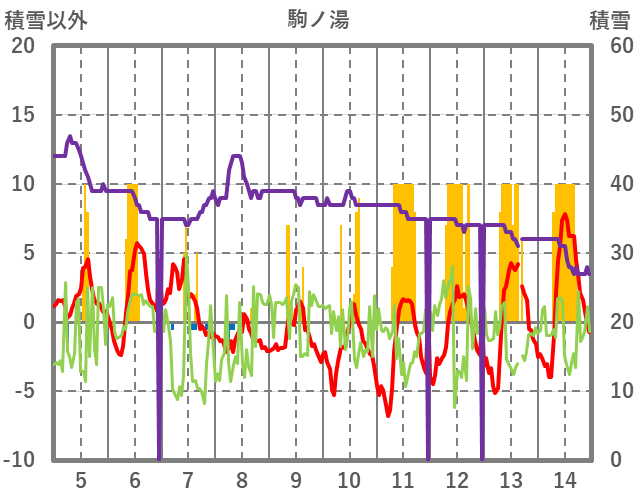 | 日 | 時 | 気温 | 降水 | 風向/風速 | 日照 | 積雪 | 降雪 |