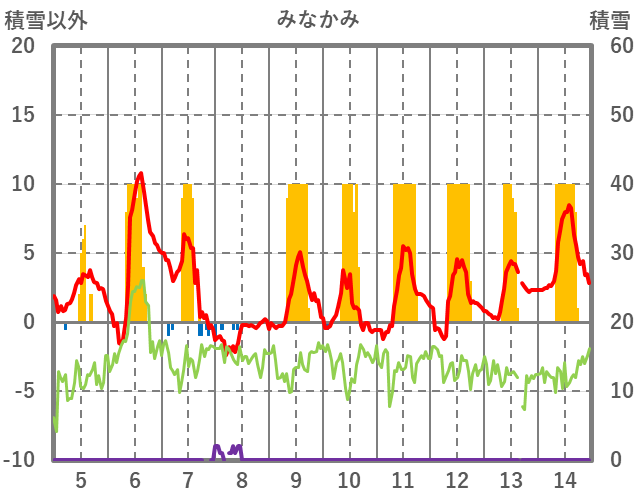| 日 | 時 | 気温 | 降水 | 風向/風速 | 日照 | 積雪 | 降雪 |