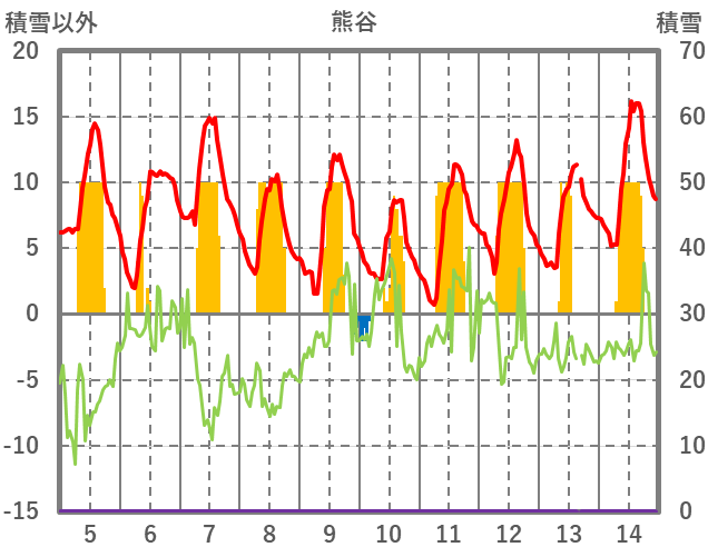 | 日 | 時 | 気温 | 降水 | 風向/風速 | 日照 | 積雪 | 降雪 |
