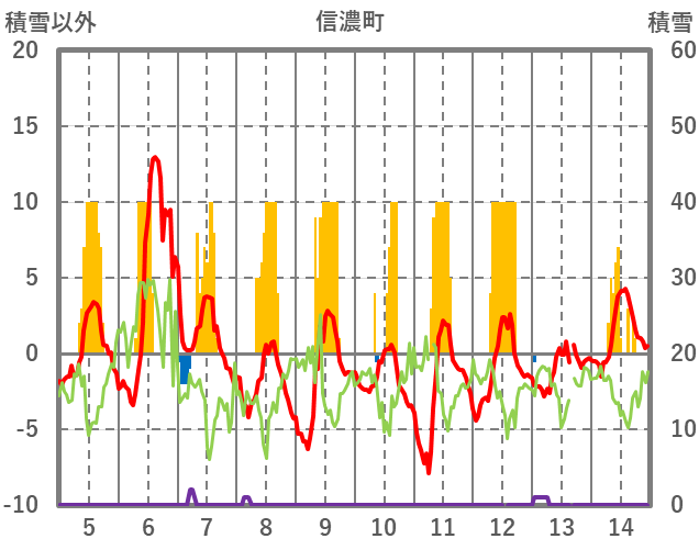 | 日 | 時 | 気温 | 降水 | 風向/風速 | 日照 | 積雪 | 降雪 |