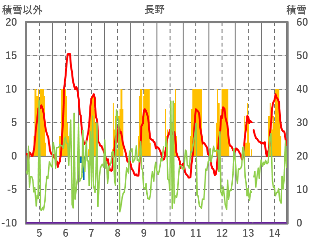 | 日 | 時 | 気温 | 降水 | 風向/風速 | 日照 | 積雪 | 降雪 |