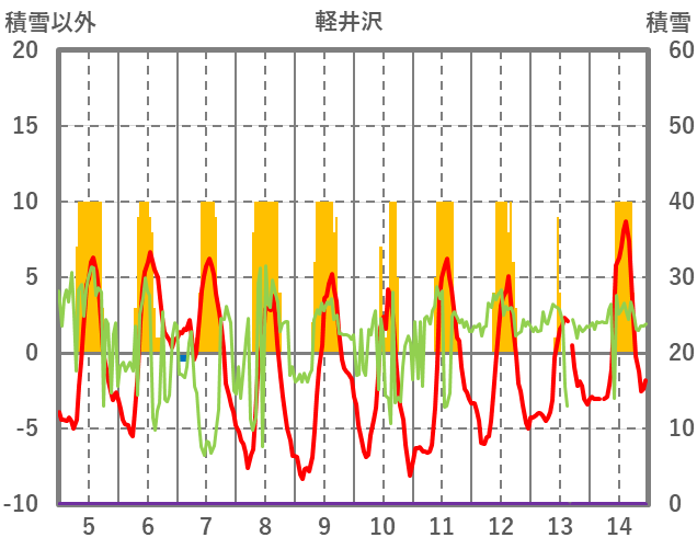 | 日 | 時 | 気温 | 降水 | 風向/風速 | 日照 | 積雪 | 降雪 |