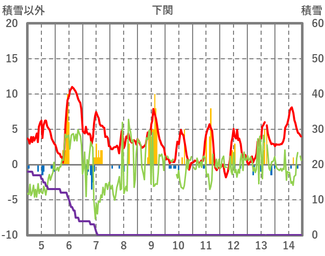 | 日 | 時 | 気温 | 降水 | 風向/風速 | 日照 | 積雪 | 降雪 |