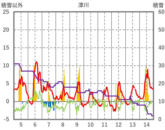 | 日 | 時 | 気温 | 降水 | 風向/風速 | 日照 | 積雪 | 降雪 |