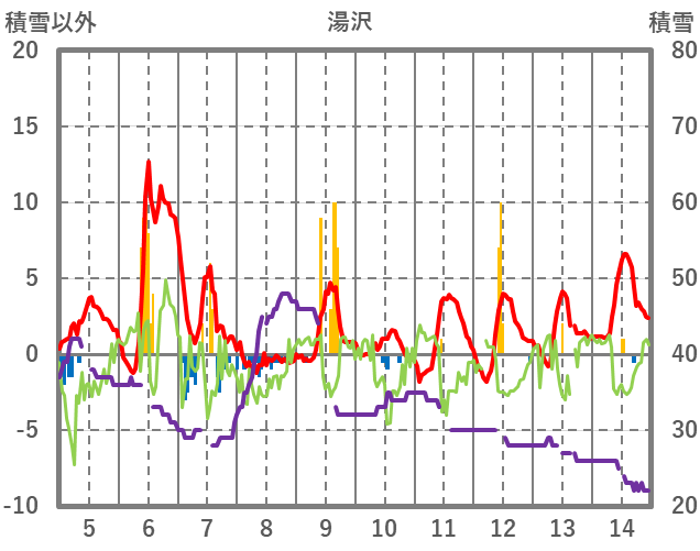 | 日 | 時 | 気温 | 降水 | 風向/風速 | 日照 | 積雪 | 降雪 |