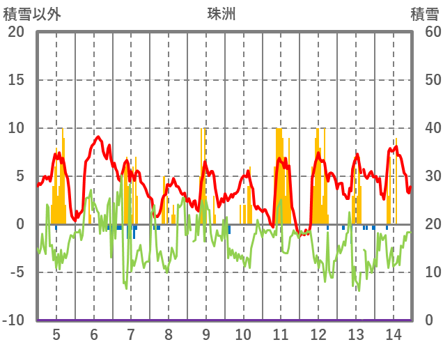 | 日 | 時 | 気温 | 降水 | 風向/風速 | 日照 | 積雪 | 降雪 |
