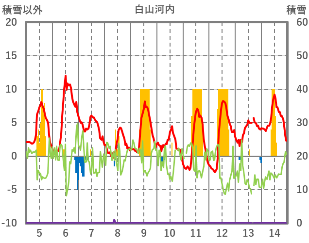 | 日 | 時 | 気温 | 降水 | 風向/風速 | 日照 | 積雪 | 降雪 |