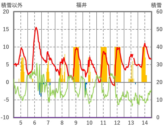 | 日 | 時 | 気温 | 降水 | 風向/風速 | 日照 | 積雪 | 降雪 |