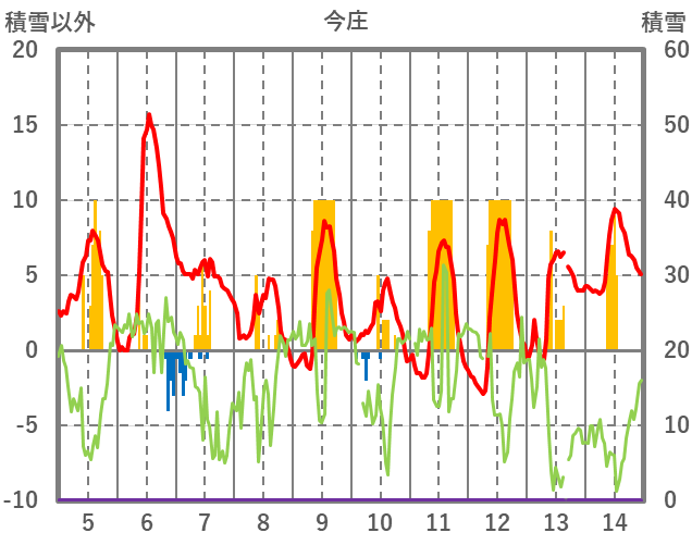 | 日 | 時 | 気温 | 降水 | 風向/風速 | 日照 | 積雪 | 降雪 |