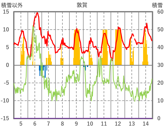 | 日 | 時 | 気温 | 降水 | 風向/風速 | 日照 | 積雪 | 降雪 |