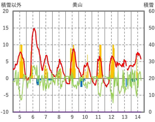 | 日 | 時 | 気温 | 降水 | 風向/風速 | 日照 | 積雪 | 降雪 |