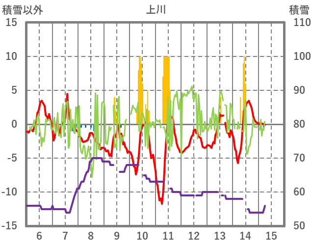 | 日 | 時 | 気温 | 降水 | 風向/風速 | 日照 | 積雪 | 降雪 |