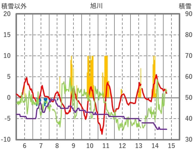 | 日 | 時 | 気温 | 降水 | 風向/風速 | 日照 | 積雪 | 降雪 |