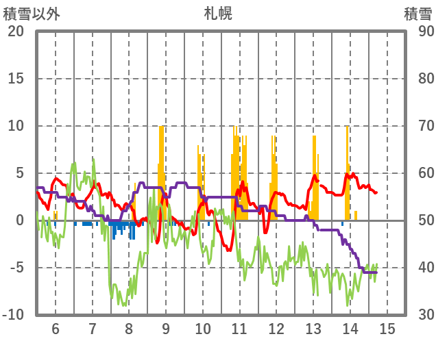 | 日 | 時 | 気温 | 降水 | 風向/風速 | 日照 | 積雪 | 降雪 |