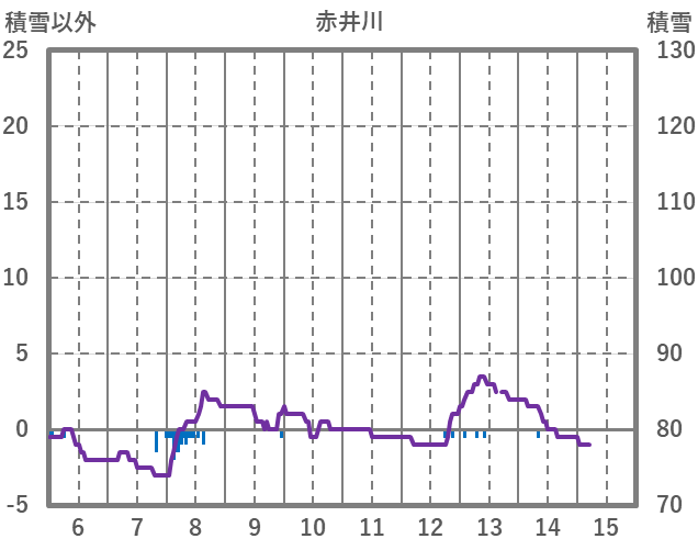 | 日 | 時 | 気温 | 降水 | 風向/風速 | 日照 | 積雪 | 降雪 |