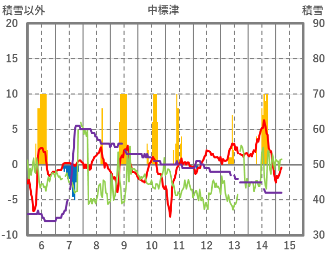 | 日 | 時 | 気温 | 降水 | 風向/風速 | 日照 | 積雪 | 降雪 |