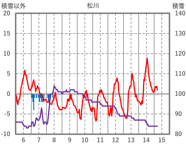 | 日 | 時 | 気温 | 降水 | 風向/風速 | 日照 | 積雪 | 降雪 |